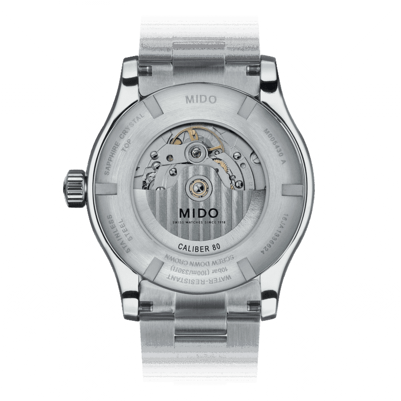 The MIDO Caliber 80 represents a major advance in self-winding movements. Thanks to its new-generation technology, it offers up to 80 hours of power reserve – twice as much as a conventional movement.