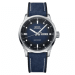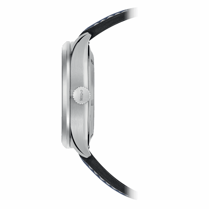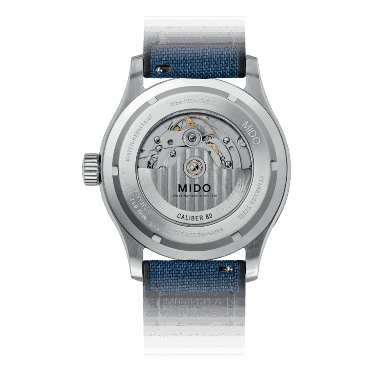 Sul quadrante sfumato del Multifort M, una finitura satinata verticale richiama le Côtes de Genève caratteristiche della collezione. L’immacolata Super-LumiNova® crea contrasto e leggibilità sulle lancette e sugli indici rotondi. La leggendaria robustezza del Multifort batte al ritmo del famoso Calibro 80. La sua riserva di carica fino a 80 ore è abbinata a una spirale in Nivachron™, un materiale rivoluzionario che offre una precisione formidabile. MIDO propone il Multifort M con un sistema di cambio del cinturino senza attrezzi, in versione acciaio o tessuto su base di gomma.