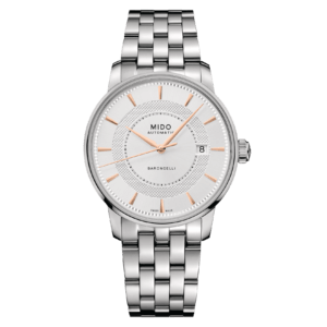 Per i suoi componenti, MIDO utilizza esclusivamente acciaio inox di alta qualità, minuziosamente lavorato in varie finiture. Ipoallergenico e facile da mantenere, questo materiale è resistente alla corrosione e ai campi magnetici e offre una maggiore durata.
