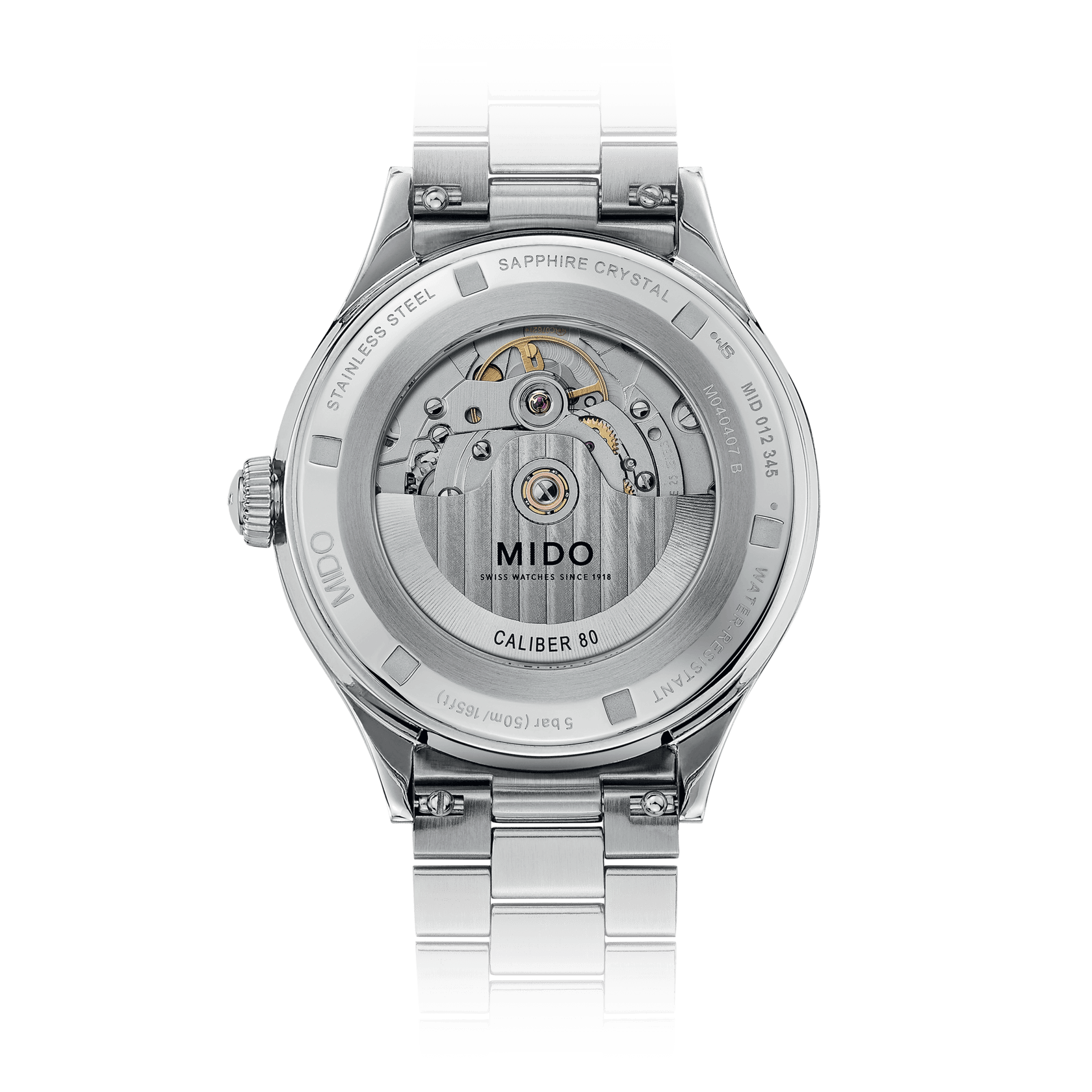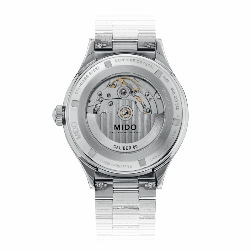 The MIDO Caliber 80 represents a major advance in self-winding movements. Thanks to its new-generation technology, it offers up to 80 hours of power reserve – twice as much as a conventional movement.