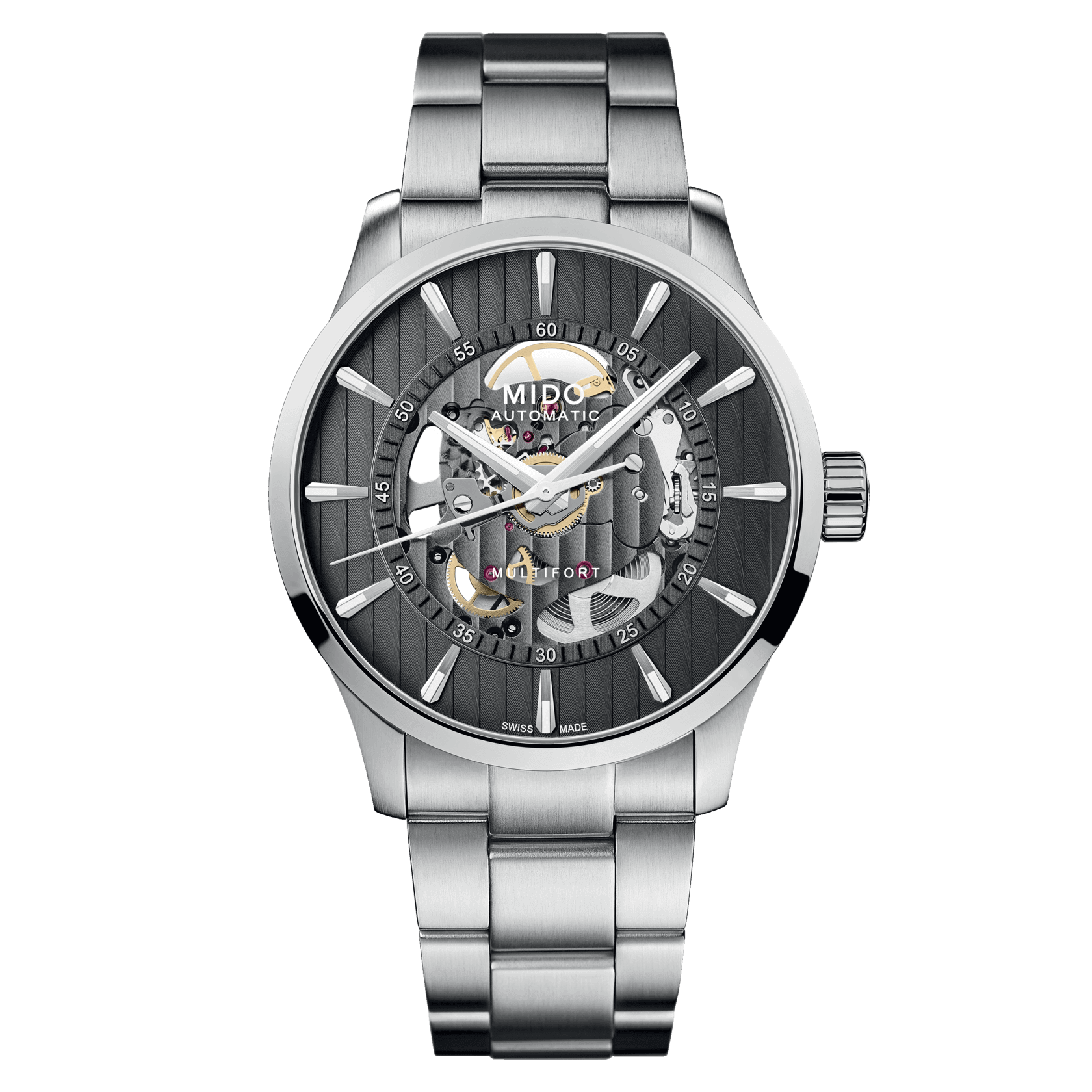Per i suoi componenti, MIDO utilizza esclusivamente acciaio inox di alta qualità, minuziosamente lavorato in varie finiture. Ipoallergenico e facile da mantenere, questo materiale è resistente alla corrosione e ai campi magnetici e offre una maggiore durata.