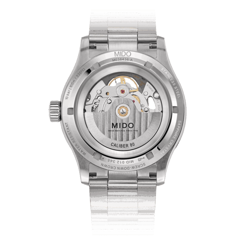 The MIDO Caliber 80 represents a major advance in self-winding movements. Thanks to its new-generation technology, it offers up to 80 hours of power reserve – twice as much as a conventional movement.