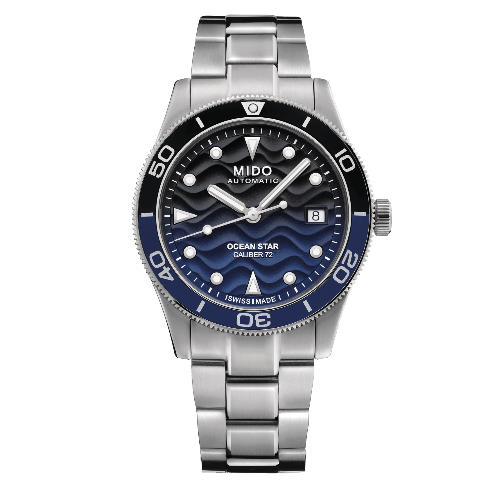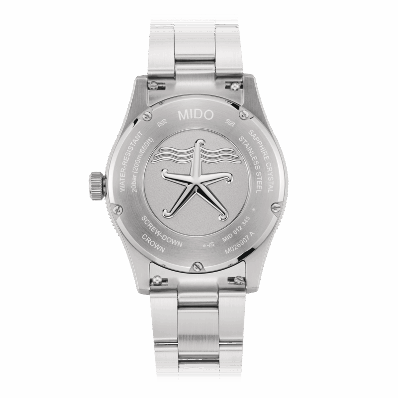 Parti per un’avventura, sulla terraferma o attraverso l’oceano, ma sempre con grande stile! MIDO propone quello che è innegabilmente il suo modello più versatile della linea Ocean Star, un compagno sportivo, affidabile e chic per qualsiasi avventura. Il diametro perfetto di 39 mm è abbinato ad una cassa estremamente sottile per l’Ocean Star. L’estetica di questo orologio automatico è definita anche dal quadrante in rilievo, unico e distintivo, che evoca il movimento delle correnti sulla sabbia. Impermeabile fino a una pressione di 200 m (20 bar / 660 ft), il famoso motivo della stella marina – emblema della storica competenza di MIDO in materia di impermeabilità – è riportato sul fondello a vite.