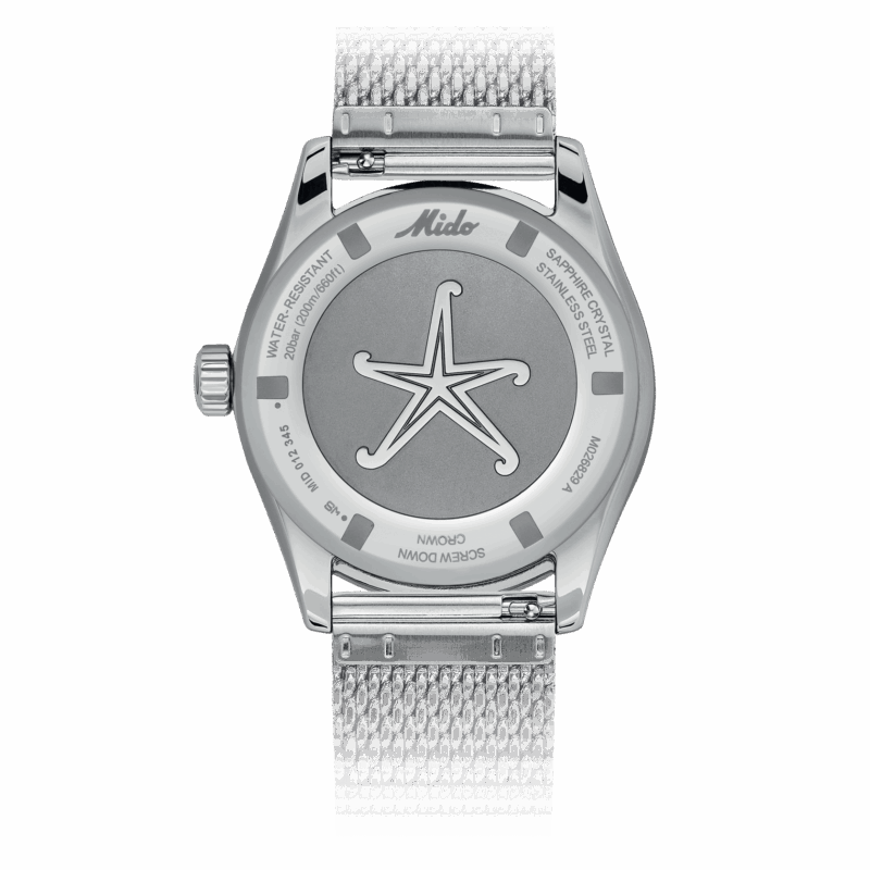 In grado di resistere a pressioni fino a 20 bar (200 m/660 ft) e dotato di corona avvitata a vite , quest’orologio offre una protezione ottimale contro l’acqua. Le sue eccezionali prestazioni sono il risultato delle note competenze di MIDO in materia di impermeabilità.