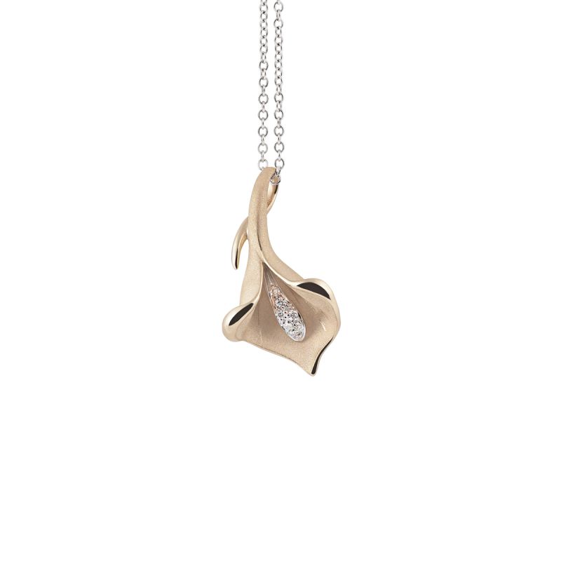 Pendente Serie Calla in Oro Natural Beige 18Kt con Diamanti