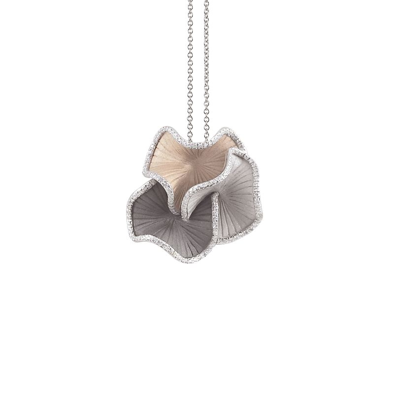 Pendente Serie Sultana in Oro White Ice, Natural Beige e Black Lava 18Kt con Diamanti