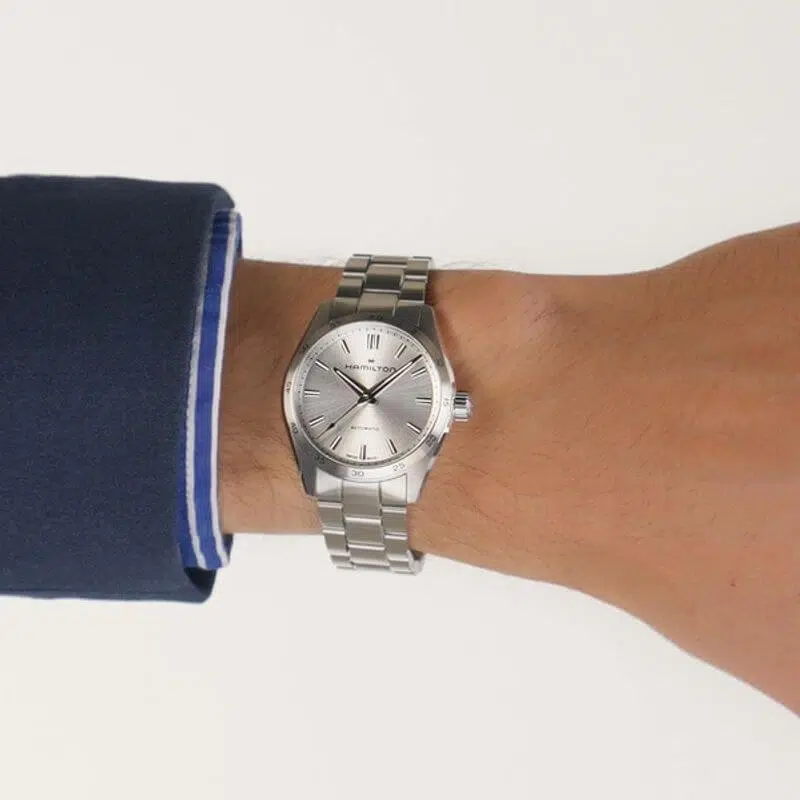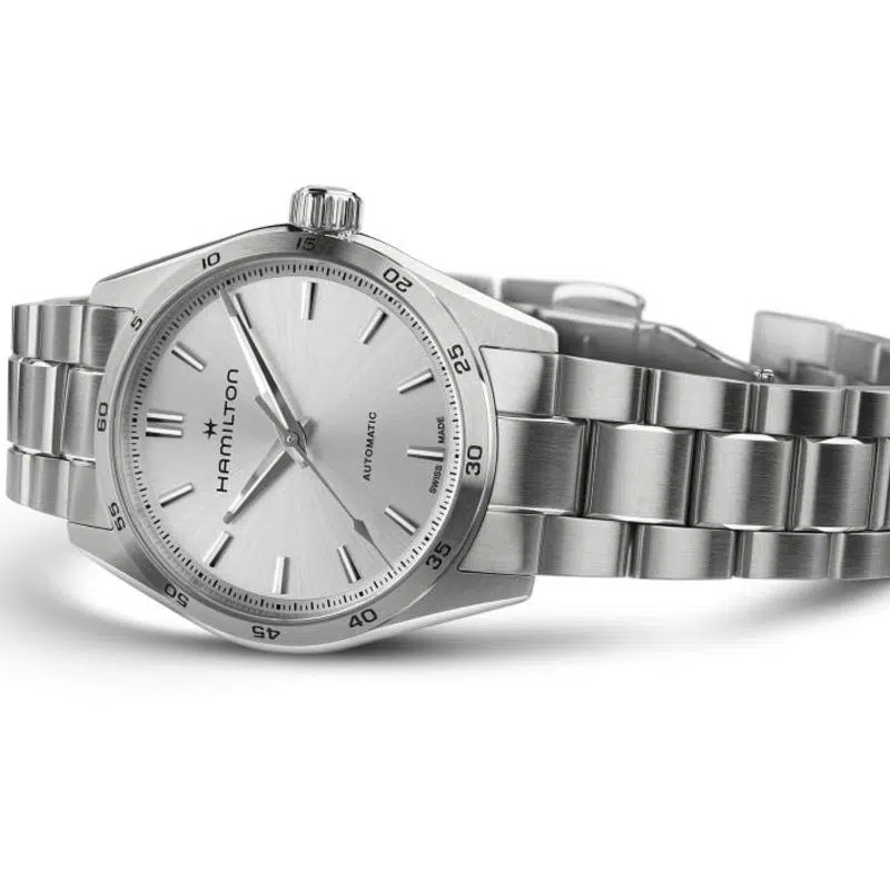 Pensata per chi ama in egual misura funzionalità e stile, la linea Jazzmaster Performer offre una potente estetica sporty-chic. Animato dal movimento automatico H-10 con riserva di carica fino a 80 ore, questo Jazzmaster Performer Automatic presenta una cassa in acciaio da 34 mm messa in risalto da un moderno quadrante argento, indici in nichel e un raffinato bracciale in acciaio.