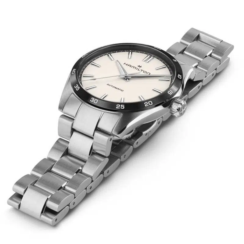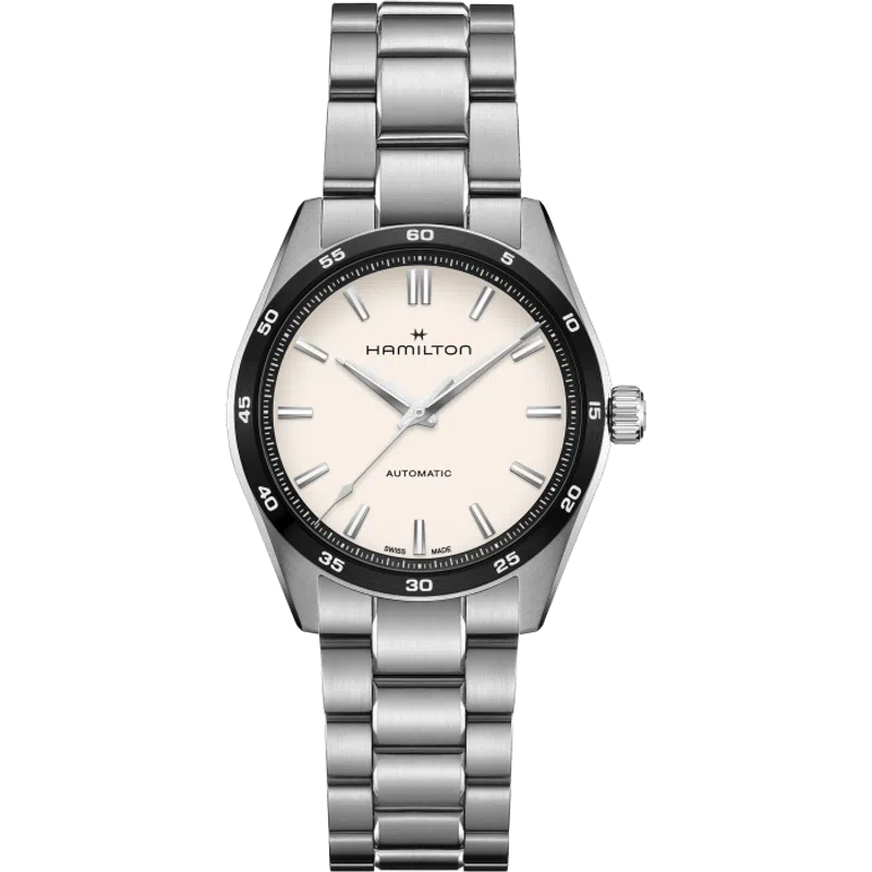Pensata per chi ama in egual misura funzionalità e stile, la linea Jazzmaster Performer offre una potente estetica sporty-chic. Animato dal movimento automatico H-10 con riserva di carica fino a 80 ore, il Jazzmaster Performer Automatic presenta una cassa in acciaio da 38 mm messa in risalto da un quadrante essenziale bianco, indici in nichel e un raffinato bracciale in acciaio.