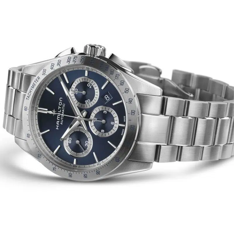 Pensata per chi ama l’equilibrio tra stile e funzionalità, la linea Jazzmaster Performer offre un look sporty-chic accattivante. Animato dal movimento cronografo automatico H-31 con riserva di carica da 60 ore, questo Jazzmaster Performer Automatic Chronograph presenta una cassa in acciaio da 42 mm messa in risalto da un elegante quadrante blu scuro e un bracciale in acciaio dallo stile deciso.