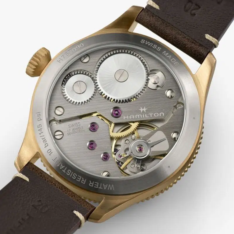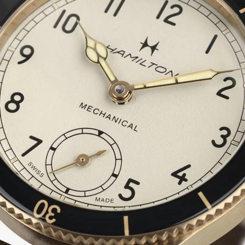 Con il suo caratteristico fascino rétro, il Khaki Pilot Pioneer Mechanical 43 mm continua a rendere omaggio alla ricca tradizione aeronautica e militare di Hamilton. Dotato di un movimento meccanico e di una riserva di carica di 50 ore, questo orologio presenta una cassa in bronzo con un quadrante bianco guscio d’uovo e un cinturino in pelle bordeaux, per un look che non passerà mai di moda.
