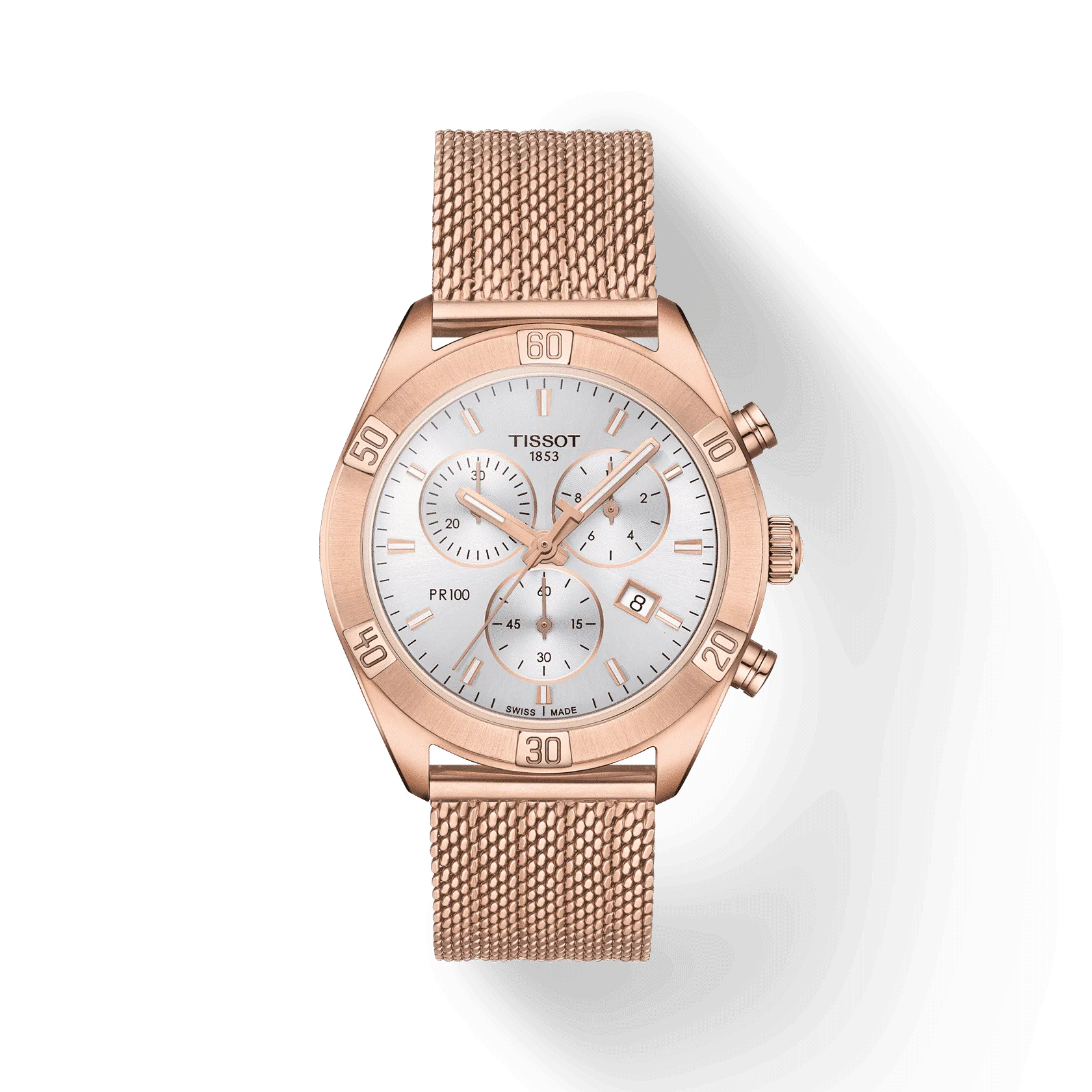 Il modello PR 100 di Tissot è un orologio classico, da indossare di frequente, adatto ad ogni occasione. L’estetica semplice ed elegante di questa collezione è particolarmente apprezzata, mentre il suo aspetto essenziale simboleggia il lusso, la qualità e lo stile classico.Questo nuovo cronografo dedicato alle donne sfoggia un’imponente cassa da 38 mm ed è disponibile in 6 diverse versioni, ovvero 6 nuovi modi di indossare un orologio sportivo ma sempre elegante e femminile.