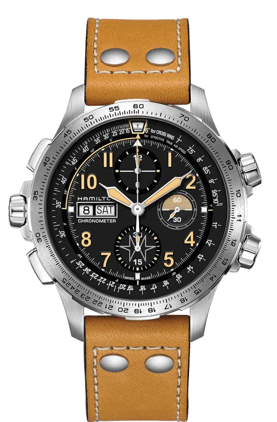 Il Khaki X-Wind Auto Chrono 2018 in edizione limitata è dotato di numerose caratteristiche tecniche pensate per i piloti e comprende fra l'altro il rivoluzionario calcolatore dell'angolo di deriva di Hamilton. Prodotto in soli 1.918 esemplari, utilizza l'H-21-Si, il primo movimento cronografo Hamilton con spirale in silicio ad essere certificato dal COSC.