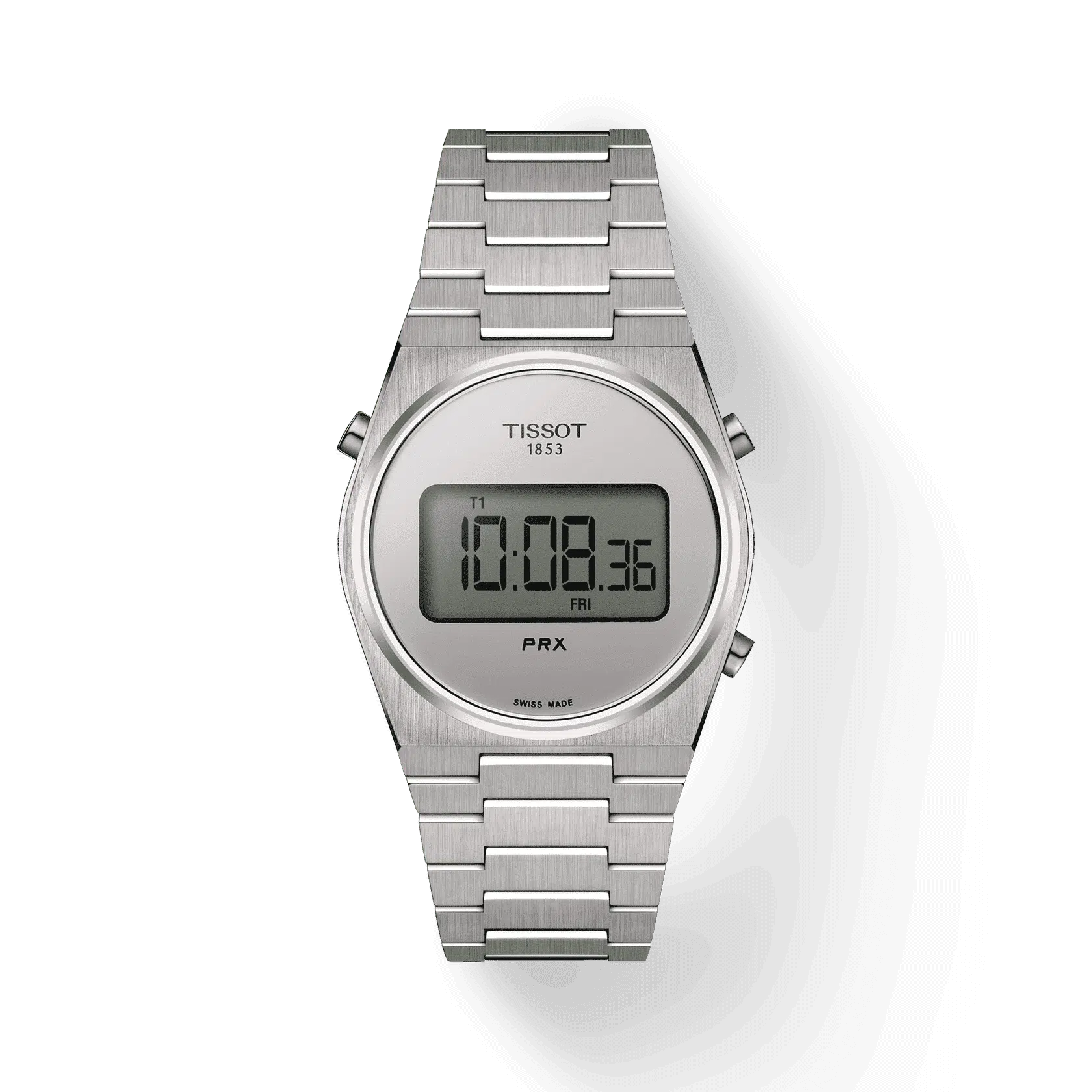 Il Tissot PRX Digital, un mix armonioso dell’iconico design PRX del 1978 e del Tissot Digital Quartz (Calibr o4012), mostra brillantemente un ibrido di epoche passate e influenze digitali. Unendo perfettamente l’estetica retrò con un tocco contemporaneo, è il segnatempo per i pionieri di oggi. Il PRX Digital, disponibile nelle opzioni da 35 mm e 40 mm e in una varietà di colori, soddisfa tutti i polsi, mentre la moltitudine di funzioni – doppio fuso orario, giorno-data, cronografo e altro ancora – soddisfa tutte le esigenze. Racchiusi da una cassa resistente all’acqua fino a 100 metri e corredati da un bracciale satinato e una chiusura pieghevole a tripla lama, questi segnatempo sono realizzati sia per la resistenza che per il comfort. La collezione Tissot PRX Digital simboleggia un viaggio nel tempo, un omaggio al passato e un brindisi al futuro.