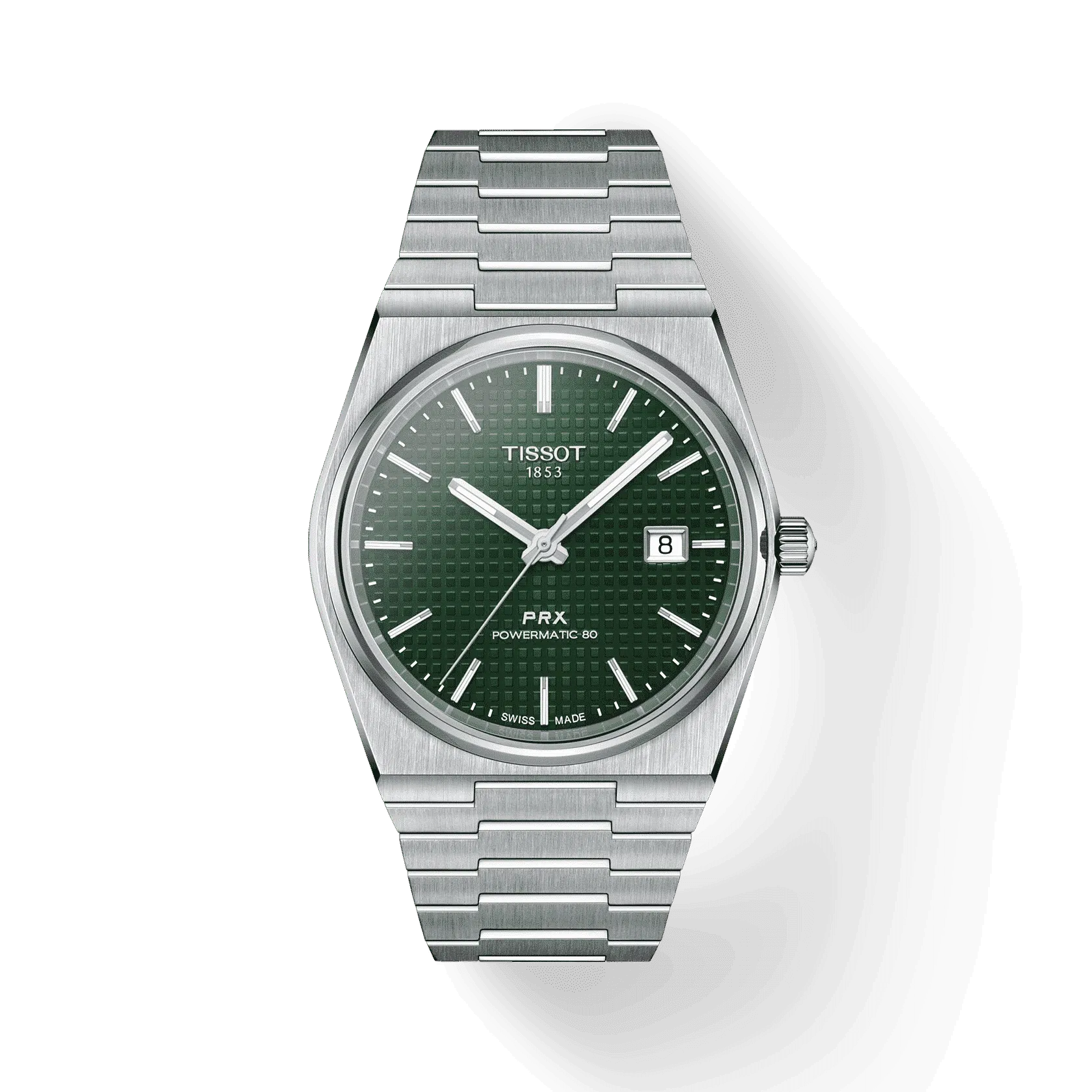 Tissot ripropone un design iconico della fine degli anni ’70, con cassa e bracciale integrati. La cassa del Tissot PRX Powermatic 80 misura 40 mm di diametro. Ha una linea leggermente a botte e ospita una lunetta liscia, sottile e rotonda. Il movimento del Prx automatico è un Tissot Powermatic 80 che offre 80 ore riserva di carica.