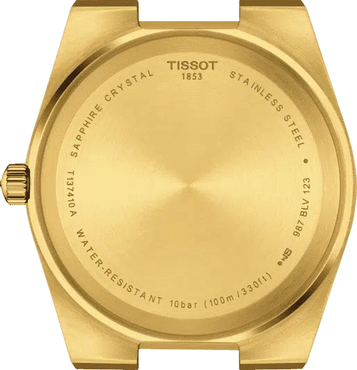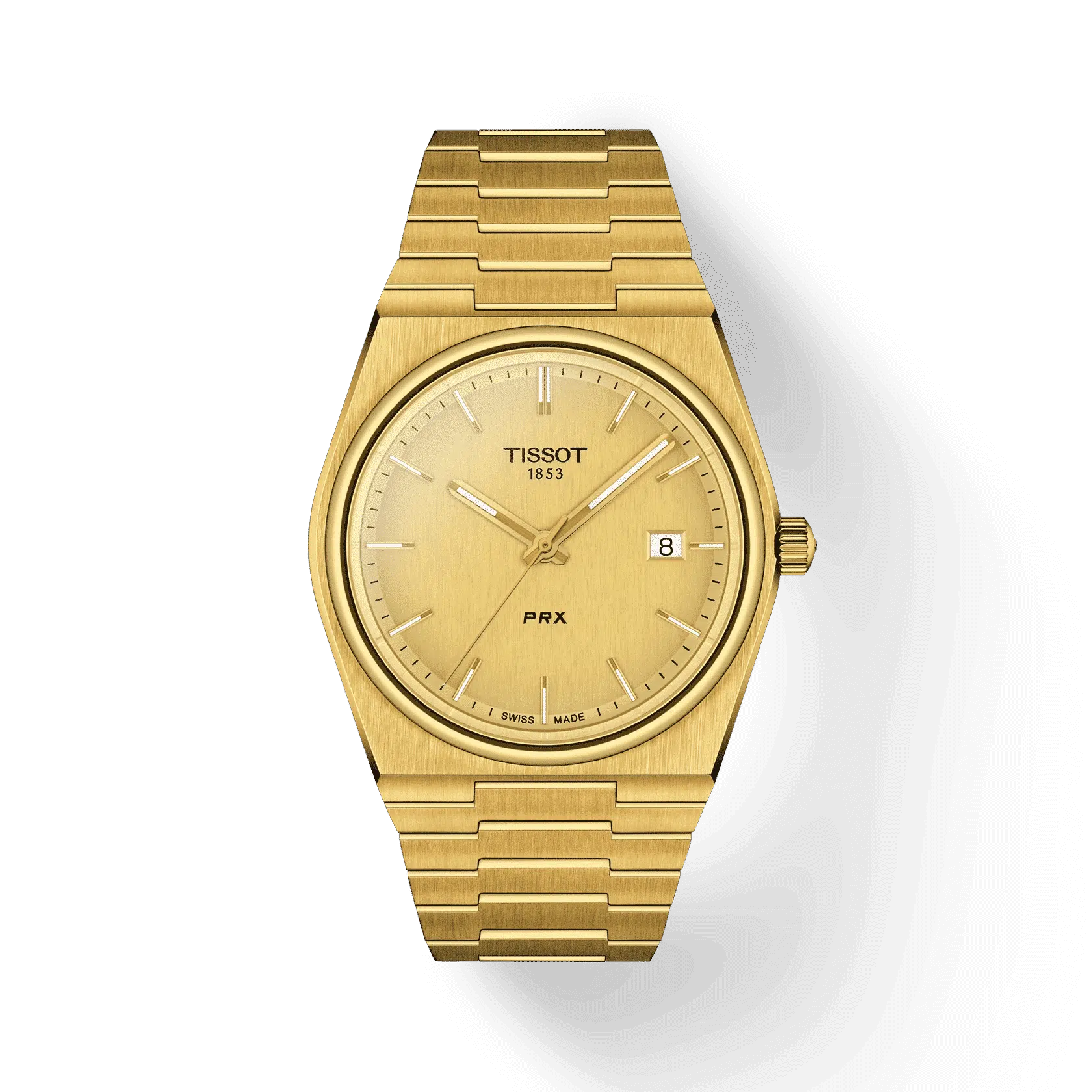 Nel 1978 Tissot creò un modello al quarzo, caratterizzato da una cassa sottile, indici stretti e un bracciale in acciaio. La sua ampia ansa orizzontale, tipica dell’epoca, era perfettamente integrata nella cassa piatta a forma di tonneau. Pochi anni dopo, Tissot ha registrato il nome PRX. “PR” sta per “preciso” e “robusto”. La “X” sta per il numero romano dieci e per la pressione di 10 bar che l’orologio è in grado di sopportare. Nel 2021 Tissot ha presentato il PRX 40205, È una versione moderna del modello precedente. La cassa in acciaio inossidabile 316L del Tissot PRX 40205 ha un diametro di 40 mm. Ha una forma leggermente tonneau ed è ornato da una lunetta stretta e rotonda. Ai lati, spazzolate verticalmente, finiture arrotondate si alternano a sfaccettature lucide. Il Tissot PRX 40205 Quartz è dotato di un quadrante con un motivo a raggiera nero o blu in combinazione con indici e lancette nichelati. Esiste anche una variante con quadrante grigio argento satinato con indici e lancette color oro rosa, una combinazione di colori che ricorda la fine degli anni ’70. La flessibilità e morbidezza delle maglie ne fanno un vero successo di design ergonomico e trasmettono uno straordinario comfort. Le lancette del PRX 40 205 sono dotate di un rivestimento SuperLumiNova® e sono posizionate l’una sull’altra con uno spazio minimo. Ciò consente di avvicinare il quadrante al vetro dell’orologio. L’effetto ottico ottenuto dai designer Tissot fa sembrare la cassa dell’orologio ancora più piatta e sottile di quanto non sia in realtà.