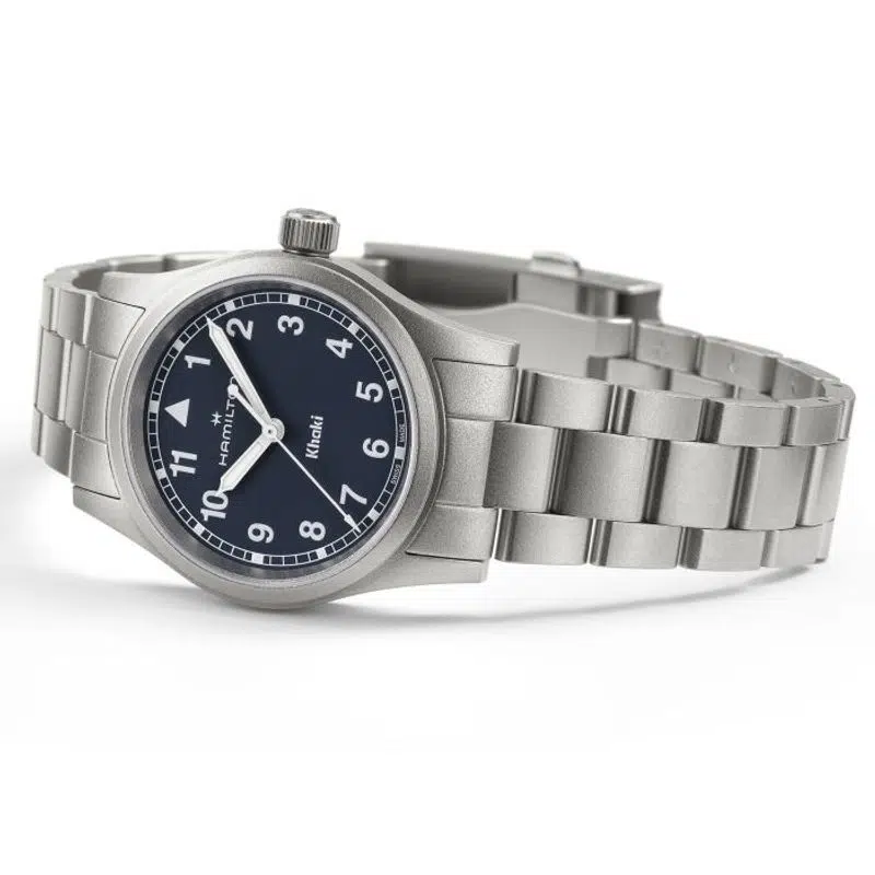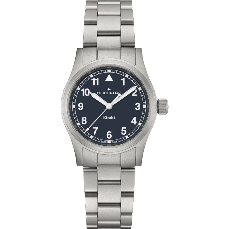 Perfetto per le tue avventure, il Khaki Field Quartz è un compagno affidabile e resistente, pronto per ogni esplorazione. Ispirato alla tradizione di precisione, innovazione e design funzionale di Hamilton, il Khaki Field Quartz combina un quadrante blue navy da 33 mm con un moderno bracciale in metallo, offrendo uno stile intramontabile.