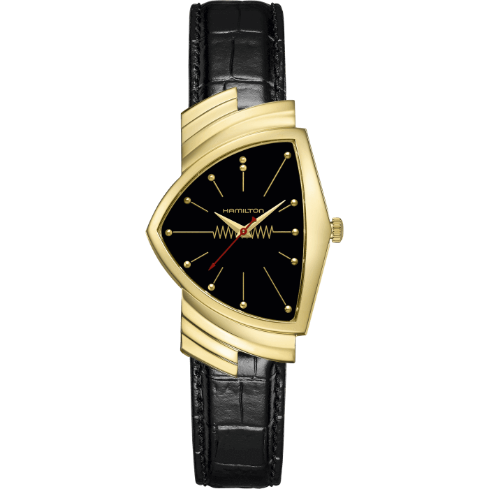 Fatti notare indossando un’icona dell’orologeria al tuo polso. Con un’esclusiva cassa in oro 14 carati, il Ventura rimane fedele alle proprie origini con il suo fascino, per rendere ancora una volta omaggio al primo orologio elettrico al mondo. In edizione limitata a 130 esemplari, questo classico del design è un tributo al 130° anniversario della Maison.
