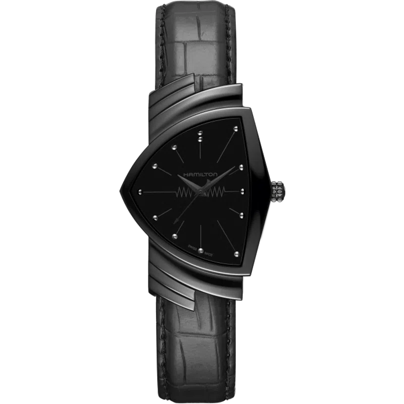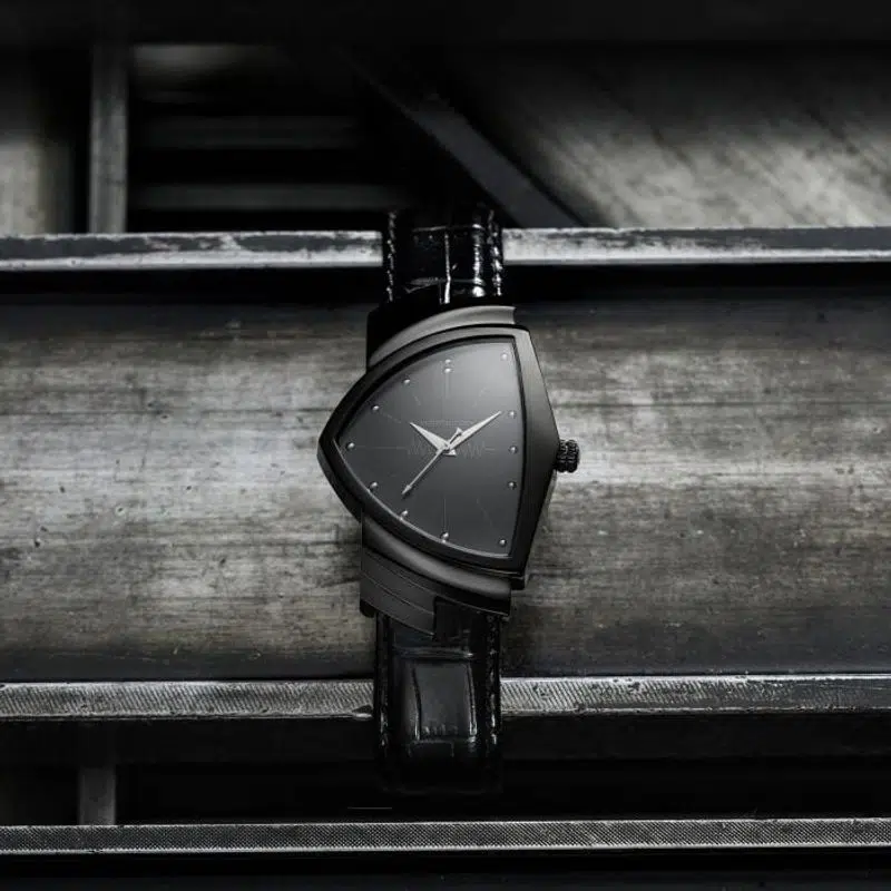 Il Ventura originale, presentato nel 1957, passò alla storia dell’orologeria come il primo orologio elettrico a batteria al mondo. Con il suo design unico e audace, divenne rapidamente un’icona e un oggetto da collezione. L’ultima interpretazione del Ventura è un fedele tributo all’originale e richiama la pionieristica forma a scudo della cassa, esempio di design moderno “Mid-Century”.