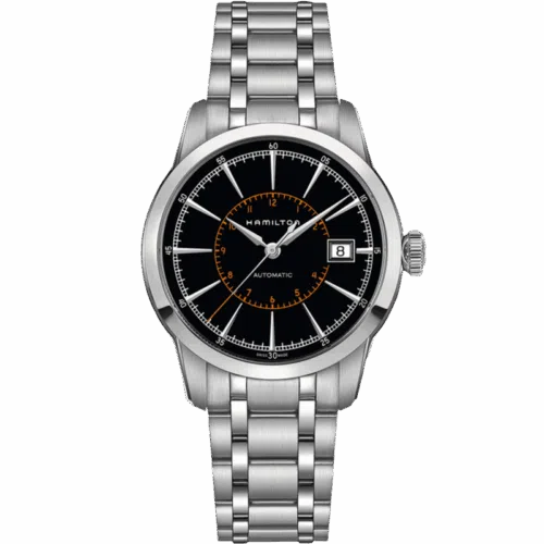 Hamilton non sottovaluta mai la forza di un segnatempo classico a tre sfere che si ispira alla sua tradizione, al suo stile esclusivo e allo spirito americano. Dalle ferrovie del passato alla vita di oggi: il movimento automatico H-10 con 80 ore di riserva di carica e il vivace quadrante che ricorda le ruote dei primi treni a vapore sono fatti l’uno per l’altro.