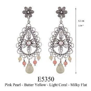 Questo modello della collezione Yvonne Christa lungo circa sei centimetri con perla centrale bianca e pietre pendenti con nuanches tra il rosa e il burro, attacco a bottone, rappresenta una nuovissima interpretazione floreale in filigrana…..stupendo…..esplosione della primavera
