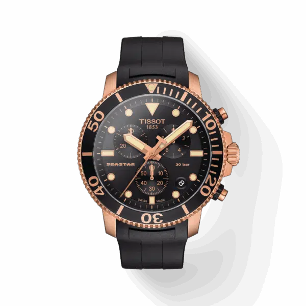 Il Tissot Seastar 1000 è l’orologio per gli amanti del mare per eccellenza grazie all’elevata impermeabilità fino a 30 bar (300 m/1.000 ft), al binomio fondello e corona a vite e ad una lunetta unidirezionale in ceramica. Il modello monta un movimento automatico.
