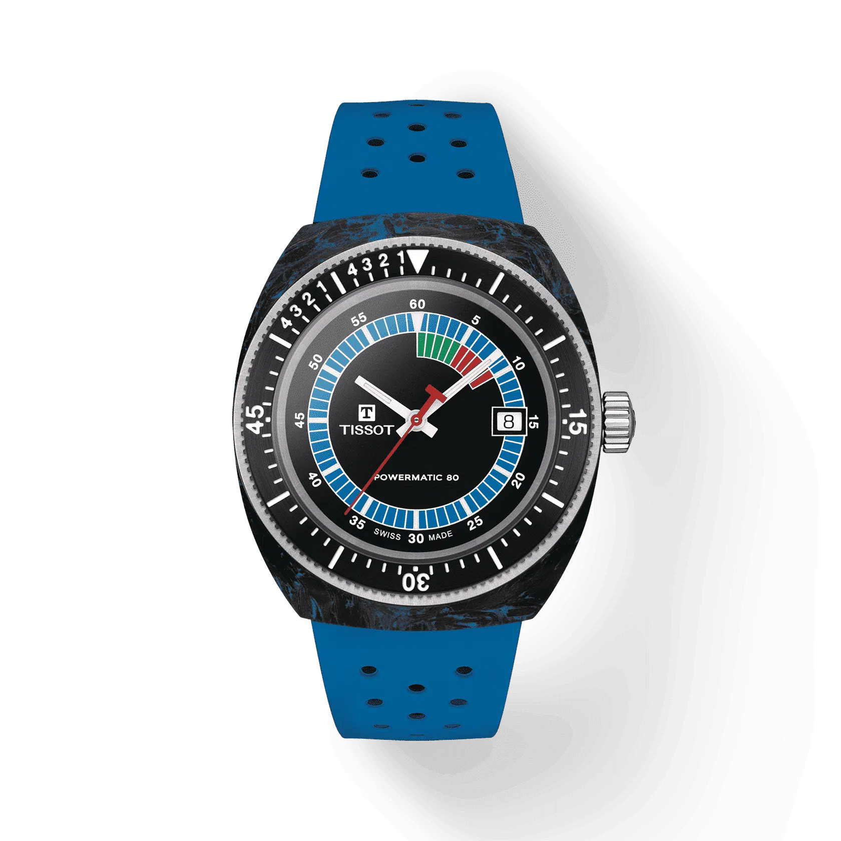 Scopri il Tissot Sideral, un’accattivante fusione di fascino vintage e artigianato moderno. L’orologio presenta una cassa in carbonio da 41 mm e un vivace cinturino blu, che rende omaggio alle sue iconiche radici degli anni ’70. Il quadrante multicolore ne esalta il fascino unico. Impermeabile fino a 30 bar (300 metri) e dotato di indici rivestiti in Super-LumiNova®, il Sideral è un pezzo unico per i trendsetter e gli appassionati di storia. Il cinturino in caucciù perforato intercambiabile consente un facile adattamento dello stile. Abbraccia lo straordinario con il Tissot Sideral.