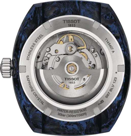 - Materiale della cassa Cassa in acciaio inossidabile 316L con carbonio forgiato marmorizzato nero e blu