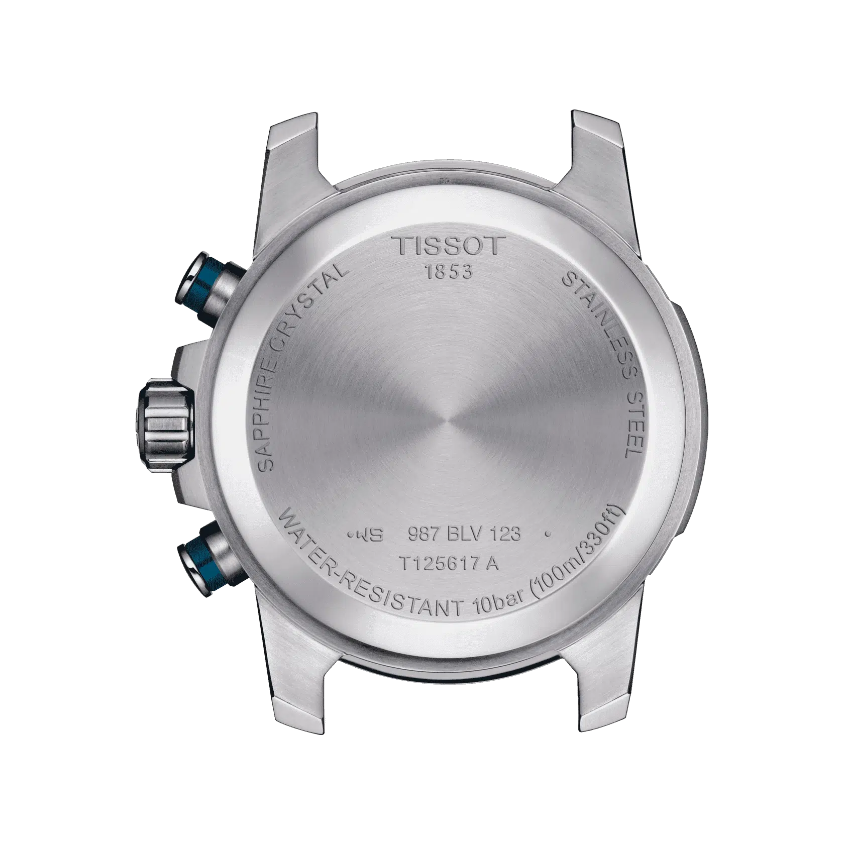 Il Tissot Supersport Chrono ha linee rette e spigoli vivi con un design audace che conferisce una forte personalità alla cassa da 45,5 mm. Il quadrante con i suoi grandi indici con SuperLuminova® e le anse asimmetriche danno un potente effetto 3D, un aspetto dinamico e consente estrema leggibilità anche in condizioni di oscurità.