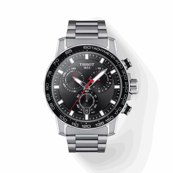 Il Tissot Supersport Chrono ha linee rette e spigoli vivi con un design audace che conferisce una forte personalità alla cassa da 45,5 mm. Il quadrante con i suoi grandi indici con SuperLuminova® e le anse asimmetriche danno un potente effetto 3D, un aspetto dinamico e consente estrema leggibilità anche in condizioni di oscurità.