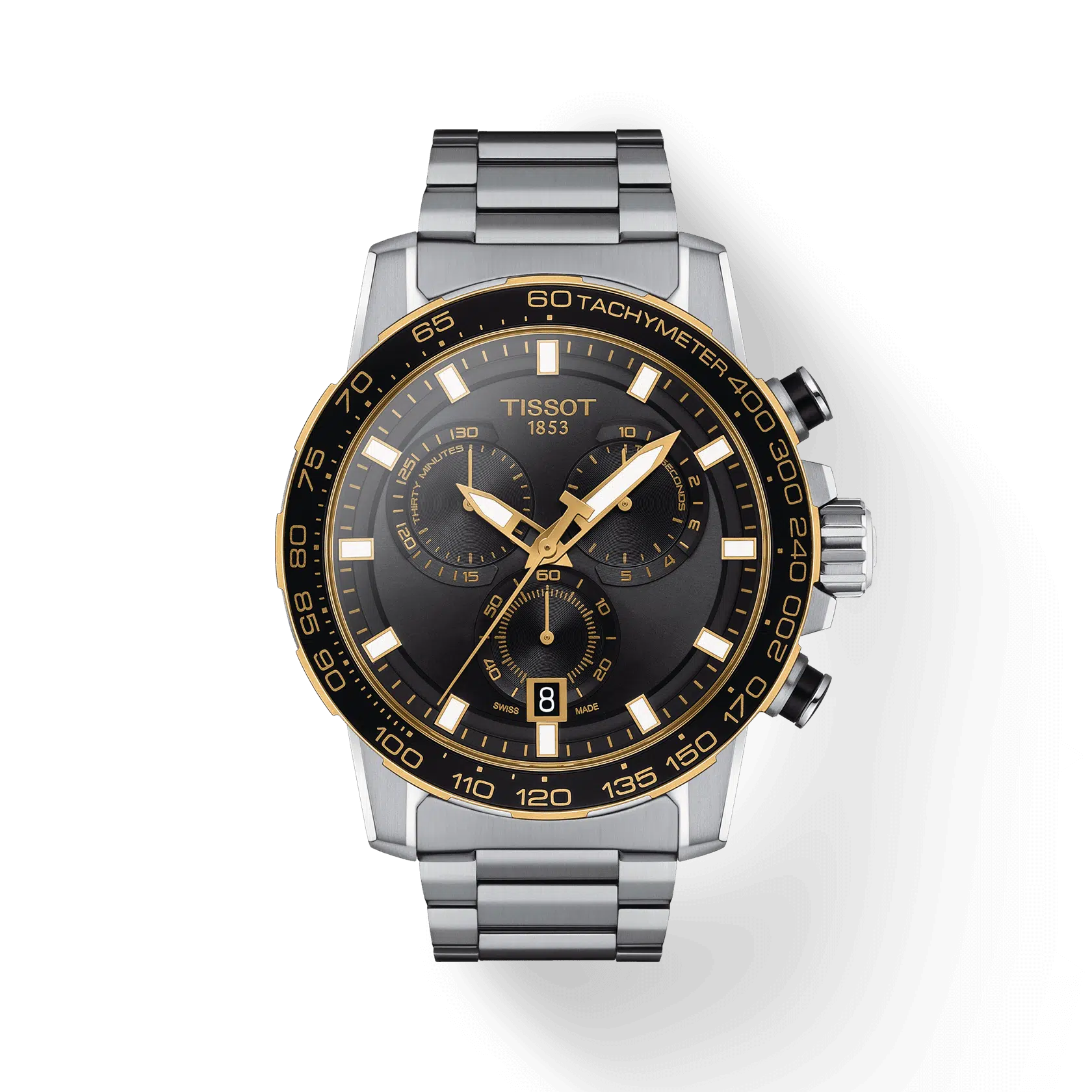 Il Tissot Supersport Chrono ha linee rette e spigoli vivi con un design audace che conferisce una forte personalità alla cassa da 45,5 mm. Il quadrante con i suoi grandi indici con SuperLuminova® e le anse asimmetriche danno un potente effetto 3D, un aspetto dinamico e consente estrema leggibilità anche in condizioni di oscurità.