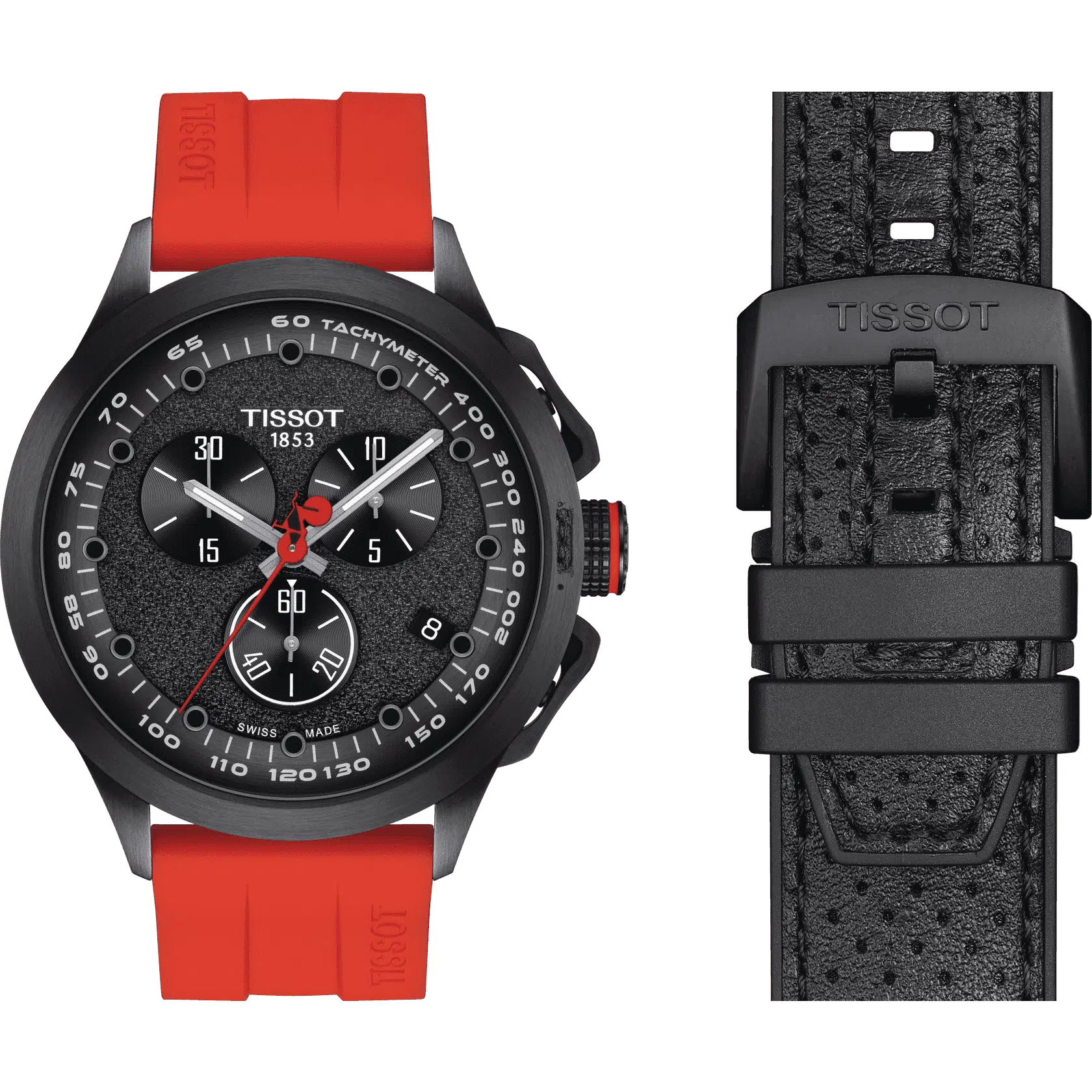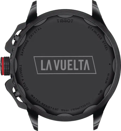 Celebra i campioni del ciclismo con il Tissot T-Race Cycling 2023 Vuelta Espana Edition, un orologio cronografo da 45 mm con un sorprendente quadrante nero. Sapientemente realizzato in Svizzera, questo orologio combina un design ispirato alle corse, audaci riferimenti rossi e la praticità di due cinturini intercambiabili: un cinturino in silicone e un elegante cinturino in pelle traforata. Con dettagli a tema bici come i pulsanti a forma di leva del freno e le lancette che rappresentano i raggi, questo segnatempo è un must per gli appassionati di ciclismo. Abbraccia l’emozione di La Vuelta, fai una dichiarazione e mostra la tua passione per l’emozionante mondo del ciclismo con questo straordinario orologio progettato per i veri appassionati di ciclismo.
