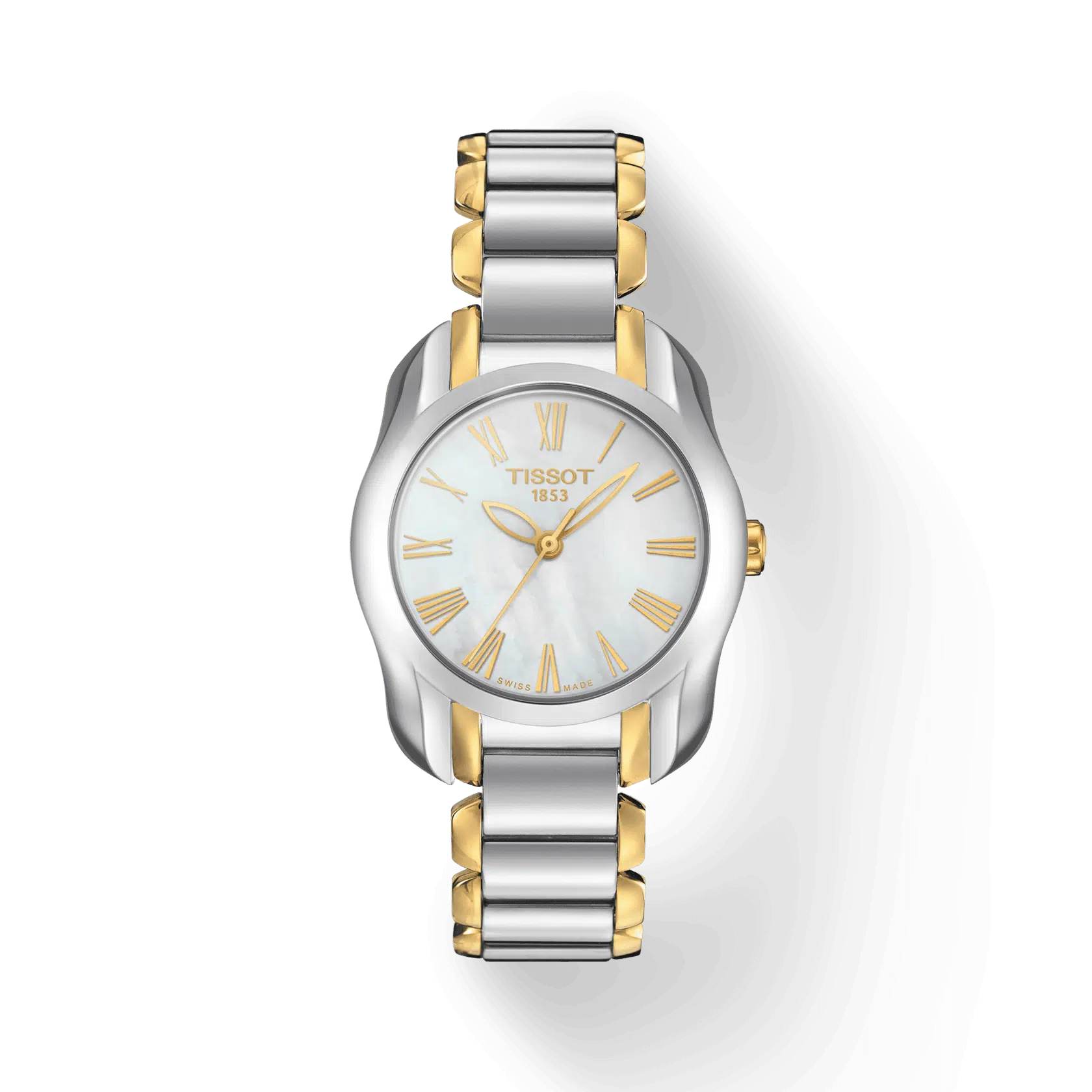 L’orologio Tissot T-Wave incarna femminilità e purezza con le sue linee armoniose, il quadrante in madreperla e le lancette a forma di petalo.