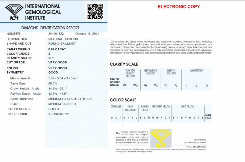 I diamanti sono certificati – Ogni diamante viene consegnato con certificazione ufficiale di Enti Certificatori Internazionali.