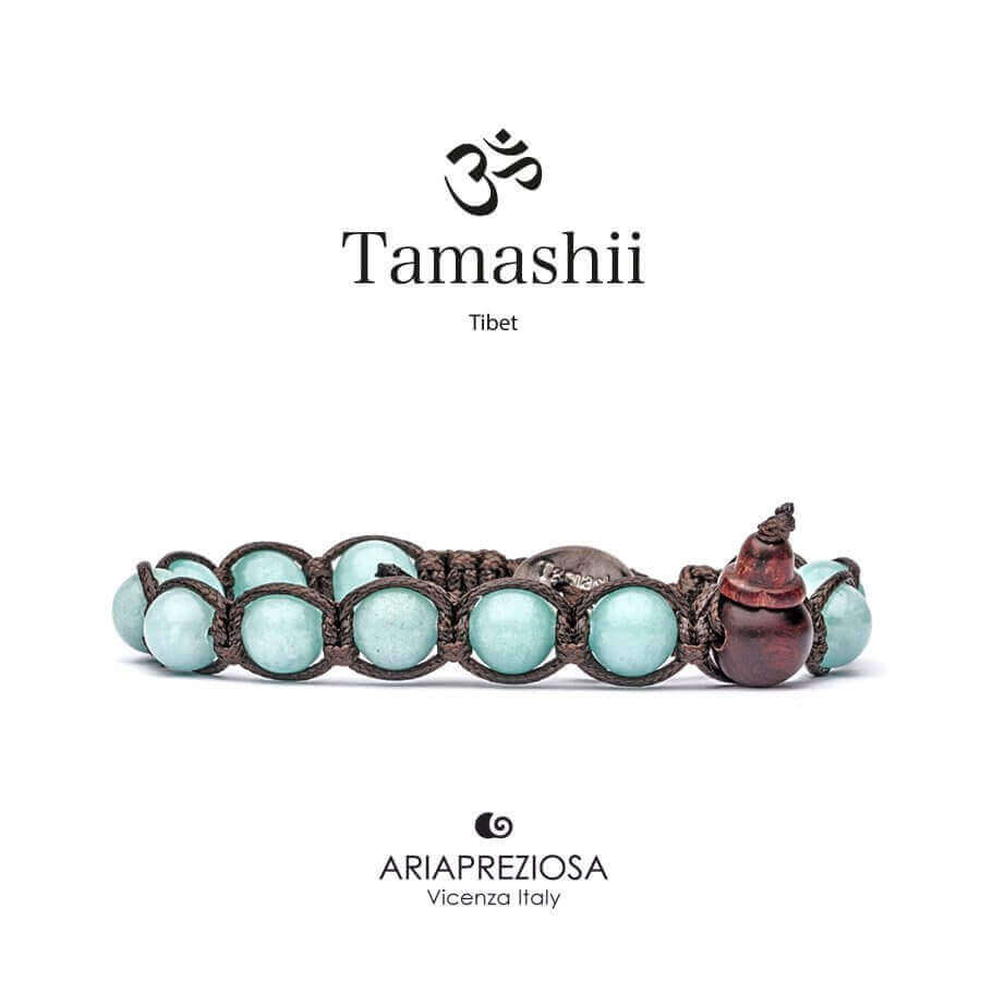 Bracciale originale tibetano Tamashii realizzato con pietre naturali AGATA AZZURRA CIELO.