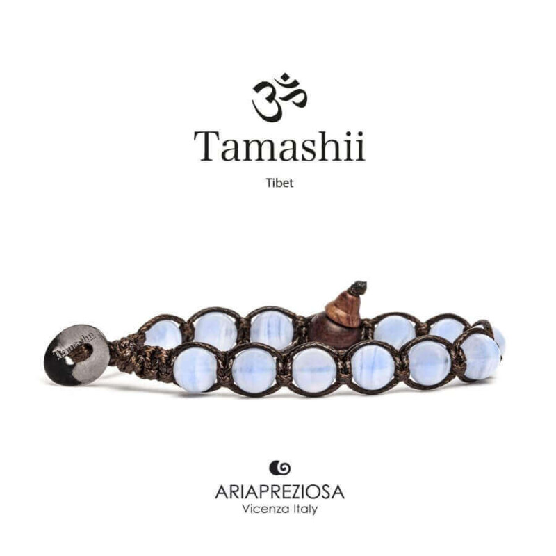 Bracciale originale tibetano Tamashii realizzato con pietre naturali CALCEDONIO.