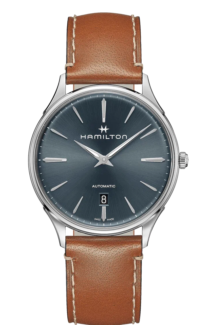 Con il Jazzmaster Thinline Automatic puoi creare l'orologio Hamilton su misura per te. Sono disponibili quattro diverse combinazioni di colore, quadrante e cinturino, da scegliere in base all'umore, e una gamma di cinturini a scelta nei colori cuoio, nero e verde oliva.