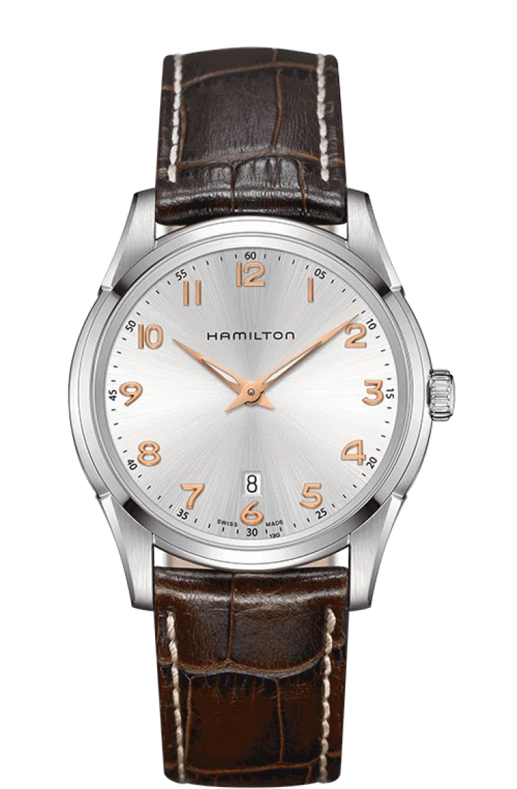 Questo pezzo della linea Hamilton Jazzmaster presenta una cassa sottile e punta pertanto a comfort e praticità. Orologio quartz proposto da Hamilton all’interno della linea Jazzmaster. Disponibili svariate varianti di colore per il cinturino in pelle.