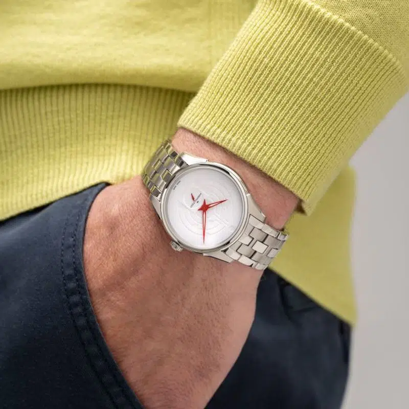 Supera i confini dello spazio con il Jazzmaster Thinline in edizione speciale, ispirato a The Wandering Earth II, il sequel del film di fantascienza cinese diretto da Frant Gwo e basato sul romanzo del 2000 di Liu Cixin. Racchiuso in una cassa essenziale da 40 mm, questa edizione speciale presenta un quadrante nero con lancette delle ore, dei minuti e dei piccoli secondi bianche a contrasto. In omaggio al tema dell’esplorazione spaziale trattato nel film, il quadrante è decorato con un design planetario.