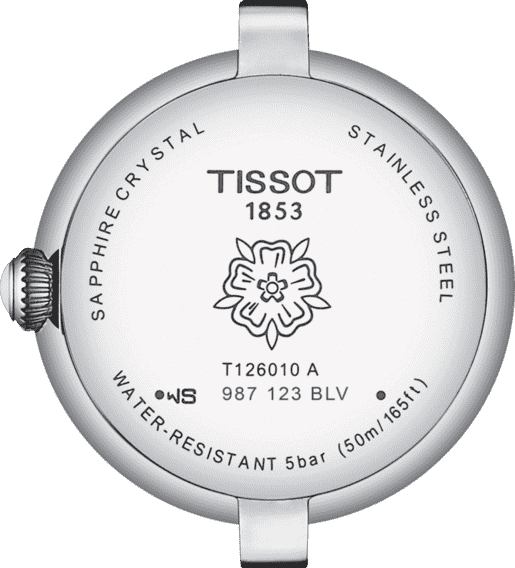 Il Tissot Bellissima Small Lady colpisce per il suo design elegante e per i bellissimi dettagli. Questo modello ha un movimento al quarzo Swiss-Made e un vetro zaffiro antigraffio con numeri romani e datario. La cassa in acciaio inossidabile 316L racchiude il quadrante bianco e il bracciale in acciaio inossidabile 316L con chiusura a farfalla con pulsanti.