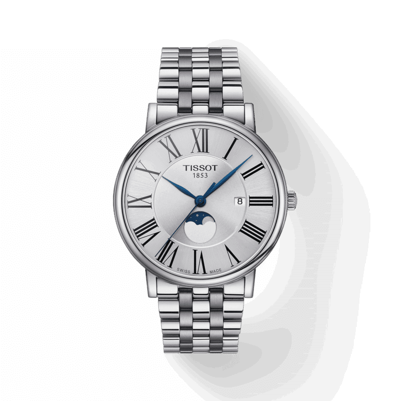 Il Tissot Carson, un capolavoro di orologeria da indossare ovunque e in ogni occasione, è il compagno ideale per rendere ogni momento un momento clou della tua vita. Con il suo design elegante, il gusto deciso e le indicazioni delle fasi lunari, la nuova collezione Tissot Carson Premium Gent Moonphase colpisce sempre nel segno.