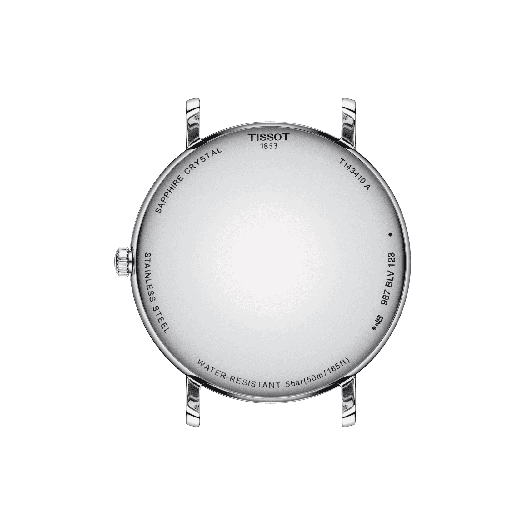 • Il Tissot Everytime è un segnatempo sobrio, puro e chic che si adatta alle preferenze di chi lo indossa. L’Everytime è disponibile in una varietà di modelli di quadrante e opzioni di cinturino, che ti consentono di esprimerti. Con questo segnatempo Tissot, ogni momento è il tuo momento. Finalmente , il sistema di braccialetti intercambiabili a sgancio rapido offre la possibilità di cambiare i braccialetti senza alcun attrezzo, per la massima versatilità