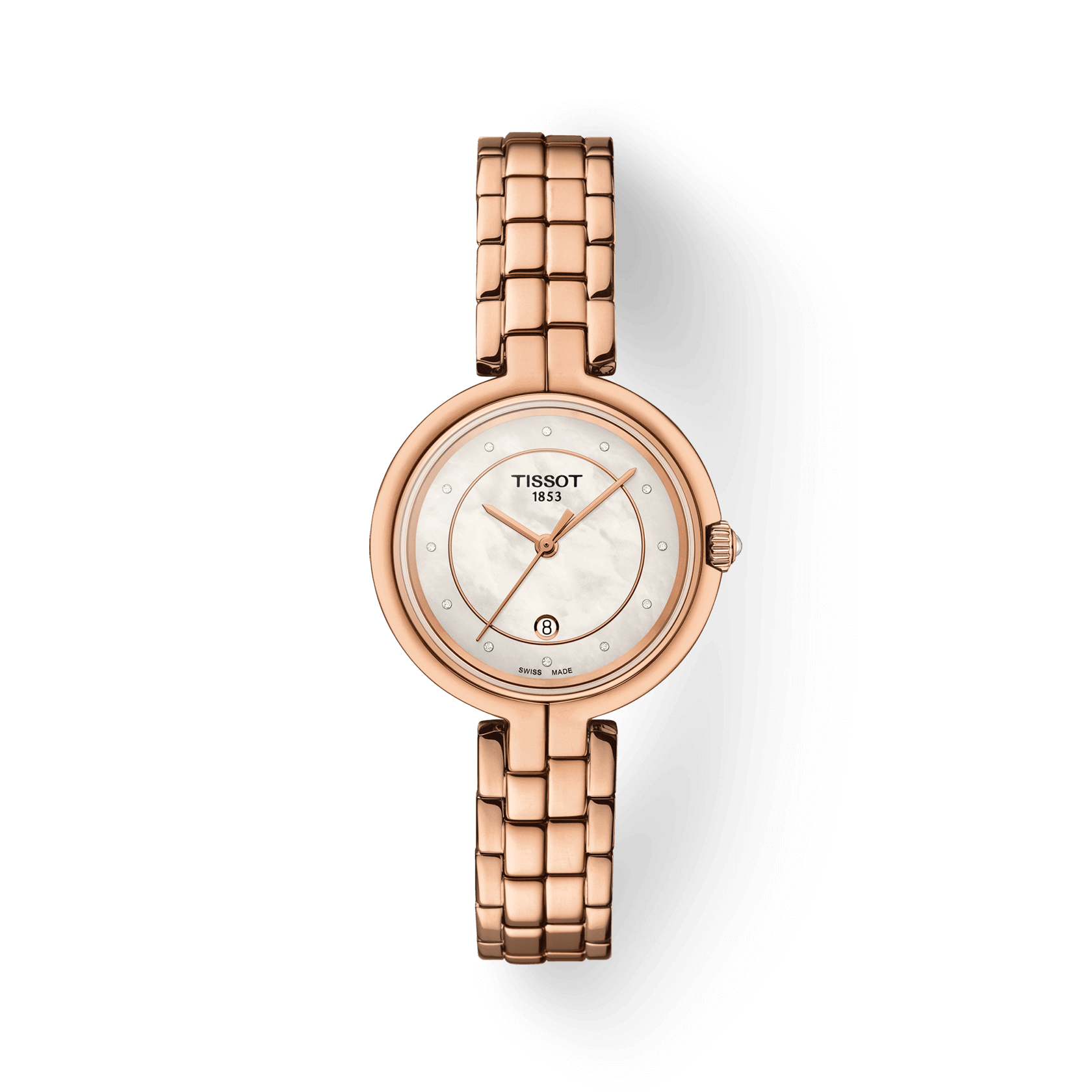 Il grazioso equilibrio del Tissot Flamingo non lascia indifferenti. La sua cassa rotonda contrasta con il suo bracciale fine. Offre una scelta di quadrante nero, bianco o madreperla, completato da un bracciale in acciaio inossidabile, oro o bicolore con chiusura a farfalla, o in pelle con fibbia standard. Protetto da un vetro zaffiro antigraffio, ogni modello ospita un movimento al quarzo di fabbricazione svizzera.