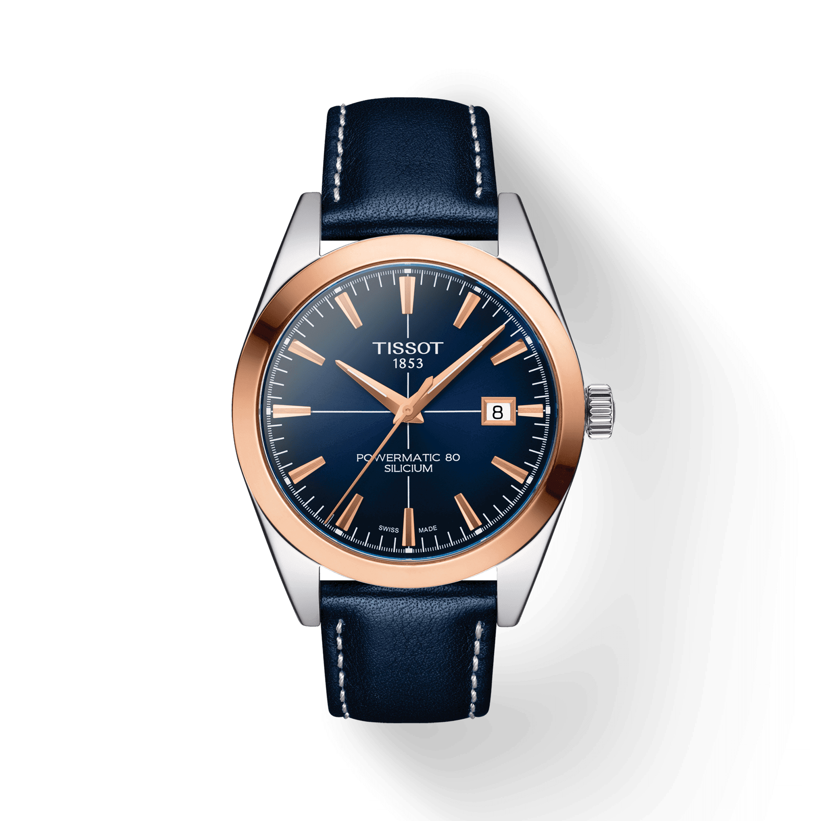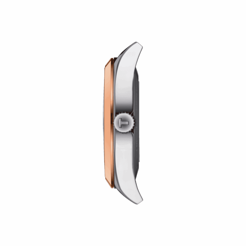 Un gentiluomo ha bisogno anche di un orologio elegante e classico. Proprio come la lunetta in oro 18K Tissot Gentleman Powermatic 80 in silicio, che ha già la sua classe nel nome. Posta sulla cassa in acciaio inossidabile 316L da 40 millimetri, la solida lunetta in oro 18 carati conferisce all’orologio un aspetto elegante e, insieme agli indici e alle lancette dello stesso colore, forma un riuscito contrasto con il quadrante.Anche l’interno dell’orologio è da gentiluomo, che si può ammirare attraverso il fondello in vetro minerale trasparente: il movimento automatico Powermatic 80 – qui nella versione con spirale in silicio – costituisce il cuore di questo segnatempo e garantisce una riserva di carica fino a 80 ore e precisione costante.Questo modello ha una solida lunetta in oro rosa 18 carati, un quadrante blu scuro con indici e datario e un cinturino in pelle blu scuro con chiusura a farfalla con pulsanti.