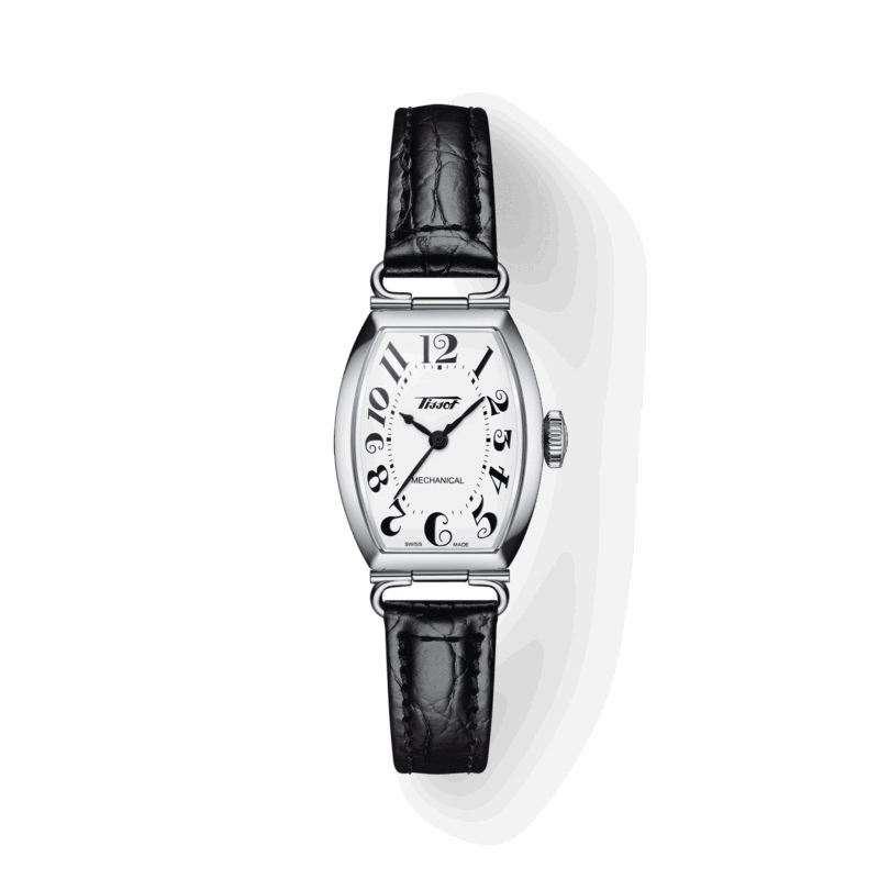 Il Tissot Heritage Porto Mechanical Small Lady riprende un modello storico del brand risalente all’inizio del XX secolo. Questo modello femminile è in stile Art Nouveau con la sua cassa tonneau bombata alta 30,1 mm e larga 22 mme le sue lancette a pera tipiche dello stile 1900.
