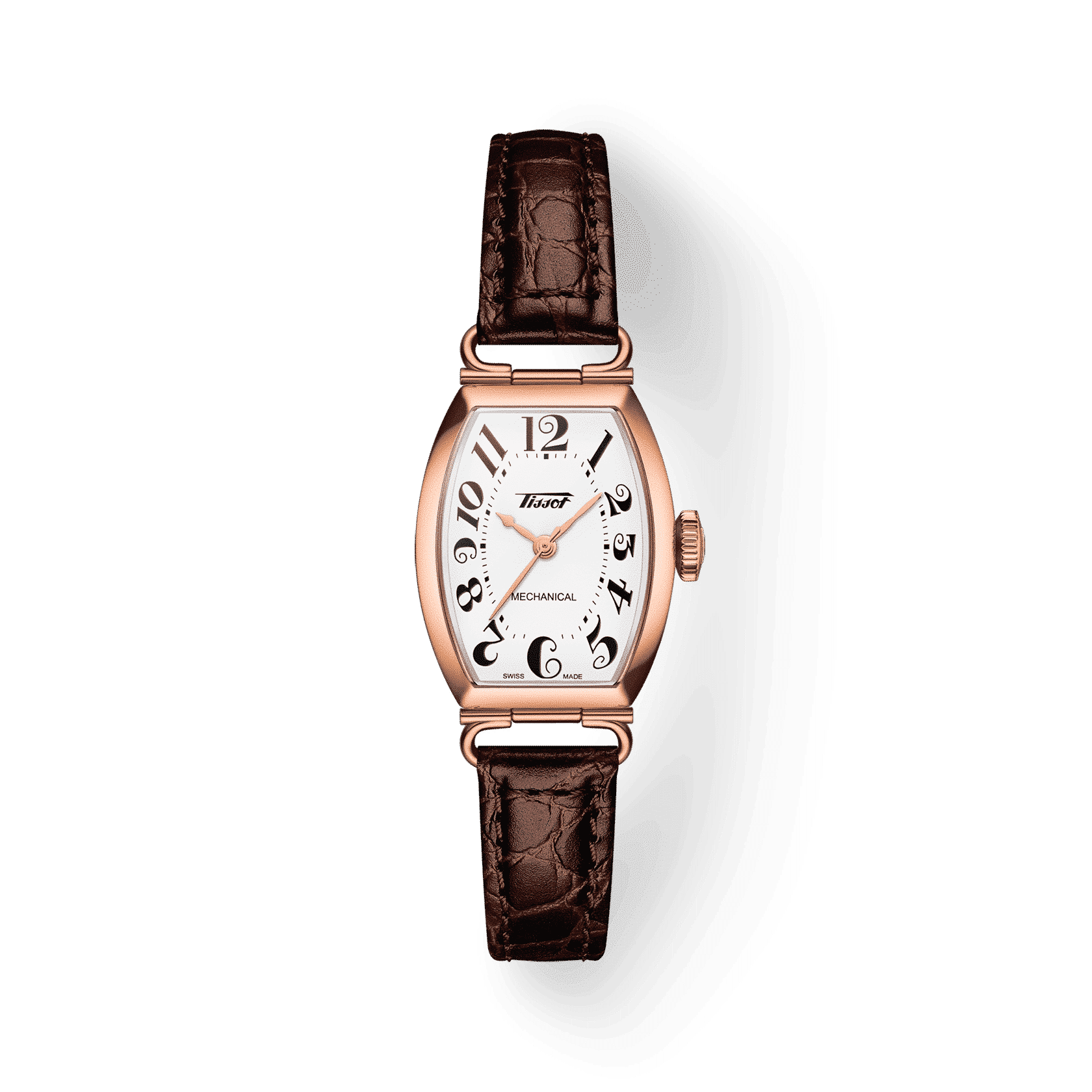 • Il Tissot Heritage Porto Mechanical Small Lady riprende un modello storico del brand risalente all’inizio del XX secolo. Questo modello femminile è in stile Art Nouveau con la sua cassa tonneau bombata alta 30,1 mm e larga 22 mme le sue lancette a pera tipiche dello stile 1900.