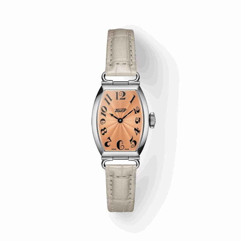 Tissot ha catturato lo spirito dell’ Art Nouveau con la sua collezione Heritage Porto, che ha le sue radici in un orologio del 1910. La collezione donna Heritage Porto è disponibile in versione al quarzo e colpisce per la cassa tonneau elegantemente curva, grandi numeri arabi in tipografia Art Nouveau, lancette a pera e anse mobili di ispirazione storica. Il fondello è curvo per adattarsi alla forma del polso e la corona è posizionata in modo che non sfreghi contro il polso. Questo modello con movimento al quarzo Swiss-Made ha una cassa tonneau in acciaio inossidabile 316L lucido e lati spazzolati. La cassa in acciaio inossidabile 316L ha un rivestimento PVD. Il vetro minerale bombato antiriflesso protegge il quadrante.