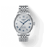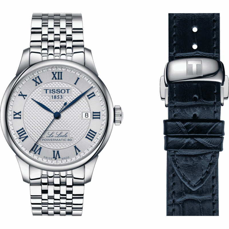 l Tissot Le Locle automatico racchiude tutta la tradizione e il know-how orologiero del marchio. Chiamato così in onore del luogo di nascita del marchio Tissot, nel Giura svizzero, questo segnatempo incarna l’eleganza senza tempo erede della tradizione orologiera. L’orologio presenta un movimento automatico di fabbricazione svizzera, un quadrante bianco, un vetro zaffiro antigraffio e una cassa in acciaio inossidabile. L’orologio ha un bracciale in acciaio inossidabile bicolore. scopri questa edizione, ventesimo anniversario. Viene fornito con un cinturino aggiuntivo in pelle blu.