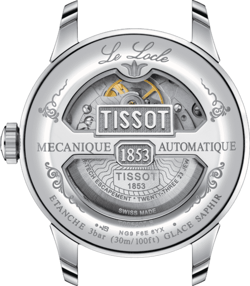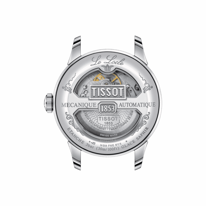 • Il nome Le Locle evoca da sempre affidabilità e successo. Oltre ad essere il nome della tradizionale sede Svizzera di Tissot, è ormai diventato anche sinonimo di orologi automatici. I modelli presentano con classe i dettagli come numeri romani e il tradizionale logotipo Le Locle. Questo specifico modello con il movimento powermatic 80, permette 80 ore di riserva di carica.