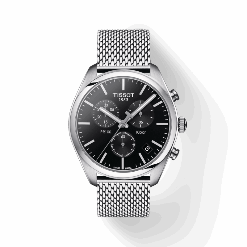 La collezione Tissot PR 100, Best seller tra tutte le famiglie Tissot, si arricchisce di un nuovo modello cronografo al quarzo con bracciale in maglia milanese. La maglia milanese conferisce all’orologio un tocco di modernità. Disponibile in differenti colorazioni PVD