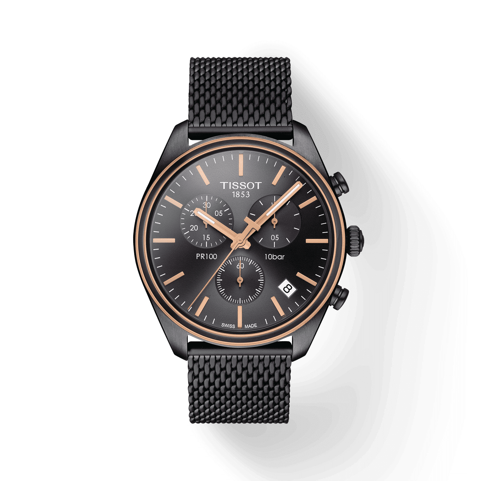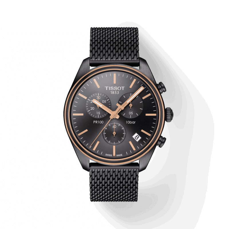 La collezione Tissot PR 100, Best seller tra tutte le famiglie Tissot, si arricchisce di un nuovo modello cronografo al quarzo con bracciale in maglia milanese. La maglia milanese conferisce all’orologio un tocco di modernità. Disponibile in differenti colorazioni PVD